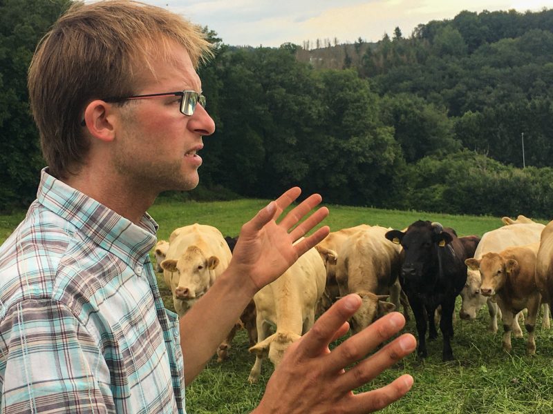 Die Landwirtschaft ist Täter und Opfer zugleich. Einerseits trägt sie zum Klimawandel bei, andererseits ist sie stark von deren Auswirkungen betroffen. Lukas Tölkes vom Gut Fussberg sieht in der regenerativen Landwirtschaft einen Weg raus aus diesem Dilemma. Bei einer Führung über seinen Hof, den die GRÜNEN Ruppichteroth organisiert hat, erklärt der Landwirt seine Vision. Und warum er zukünftig kein Bio-Bauer mehr sein will.